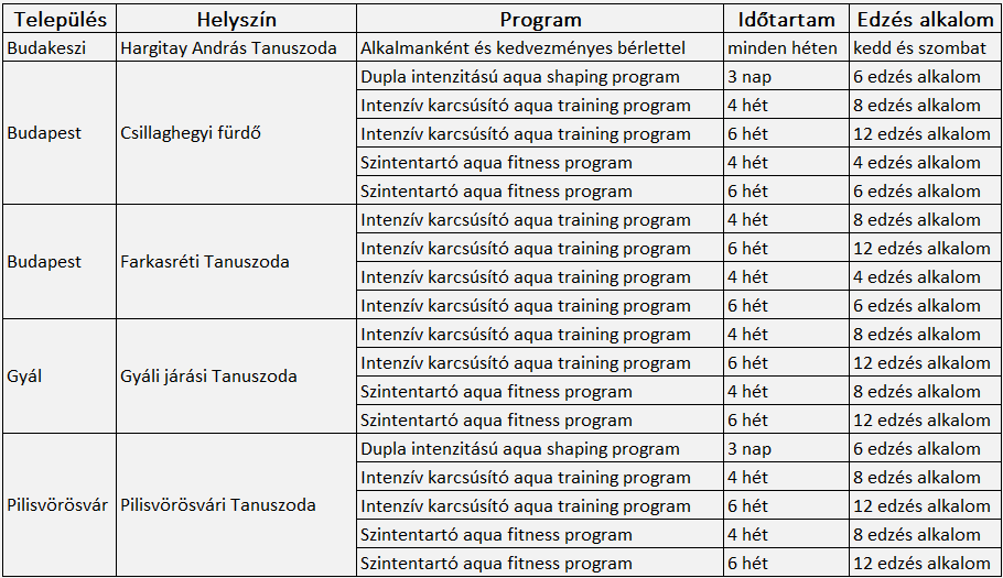 A karcsúsító aqua training program ára 18 000 Ft/fő.